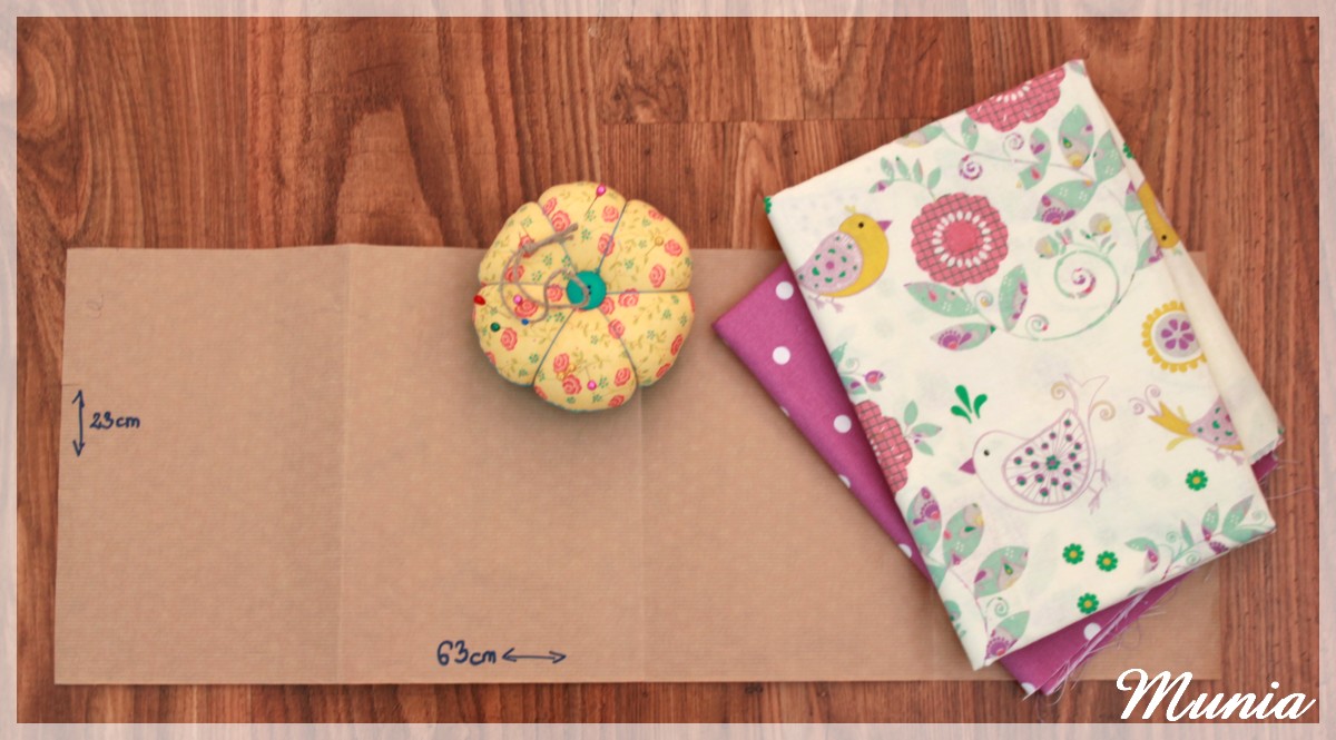 - materiał na zewnętrzną część ( u mnie w kwiaty i ptaki )