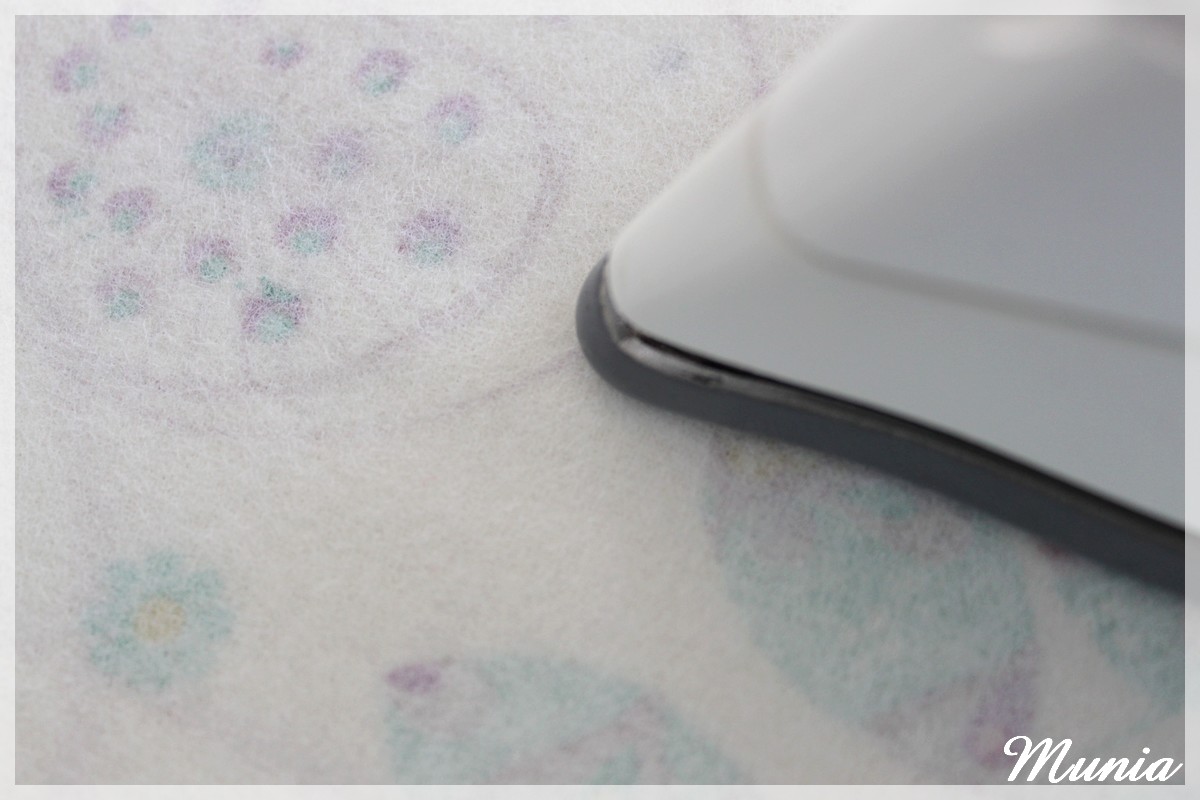 4. Następną flizelinę z klejem jednostronnym, klejem do dołu naprasowuję na flizelinę z usztywniaczem :