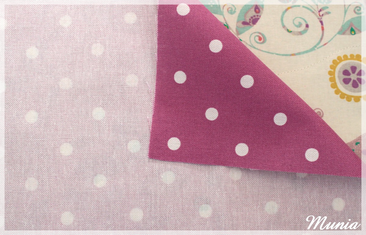 Ważne, żeby nie naklejać obu flizelin na materiał, który będzie wewnątrz koszyka - w moim przypadku fioletowy w białe grochy.
