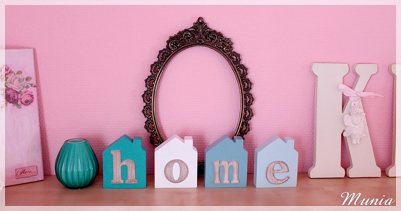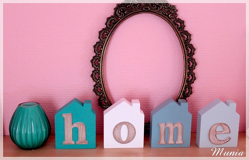 Moje ostatnie nabytki to wazoniki w odcieniach niebieskiego i turkusu, oraz drewniany napis HOME.