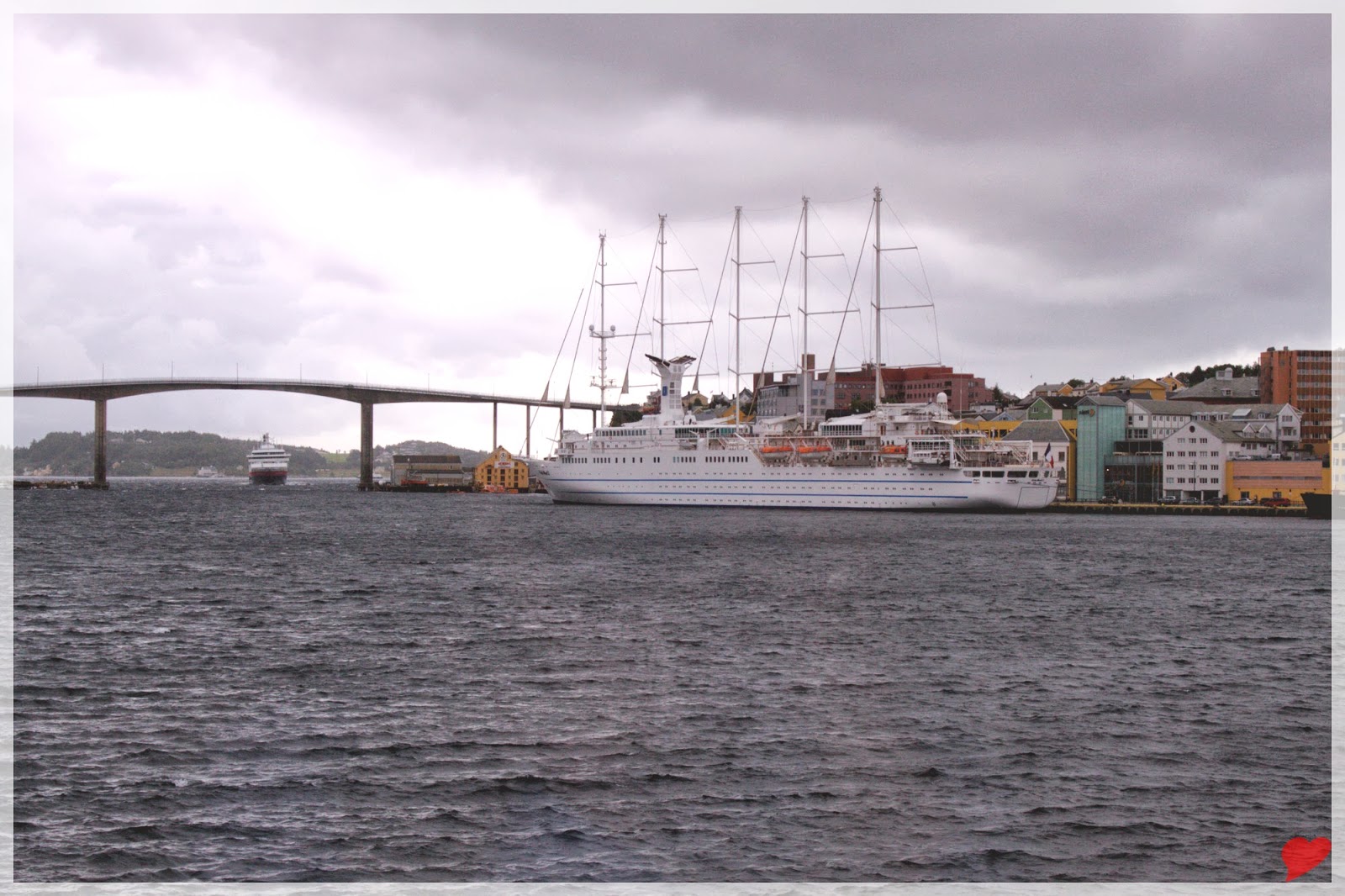 Niestety od kilku dni u nas pogoda raczej jesienna...Deszczowo, bardzo wietrznie i zimno, przez moment myślałam o napaleniu w kominku, ale na szczęście rozgrzał mnie talerz gorącego kremu pieczarkowego z grzankami...pychota. Za to za oknem pojawił się nowy obiekt wart zrobienia zdjęcia. Nie znam się w ogóle na typach statków, żaglówek, itp. ale domyślam się, że ten cumujący za oknem to raczej duży turystyczny żaglowiec...piękny !