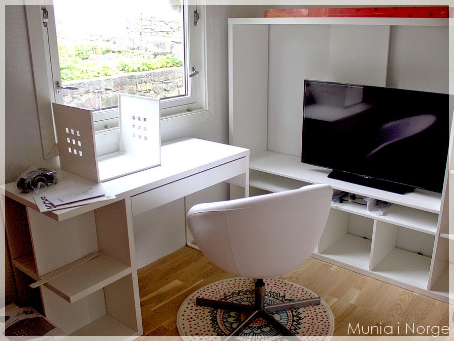 Reszta ścian jest wytapetowana tapetą z włókna szklanego i pomalowana na biało. Podłoga oczywiście ta sama co w salonie i reszcie domu. Meble - tu z pomocą przyszła IKEA.